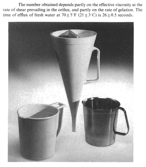 Imagine you are a quality control inspector at a paint manufacturing company. You need to ensure that all batches of paint have a consistent viscosity. You use a Marsh funnel to measure the viscosity of a new batch of paint. The time it takes for 1 liter of paint to flow through the funnel is 45 seconds.