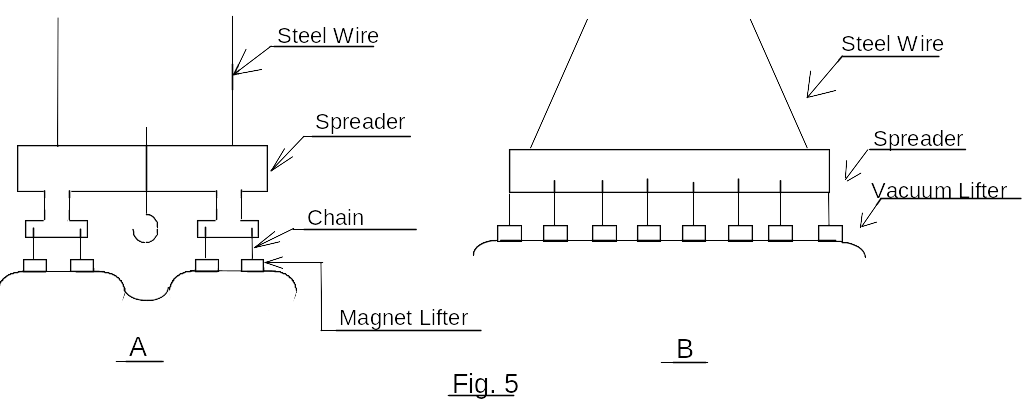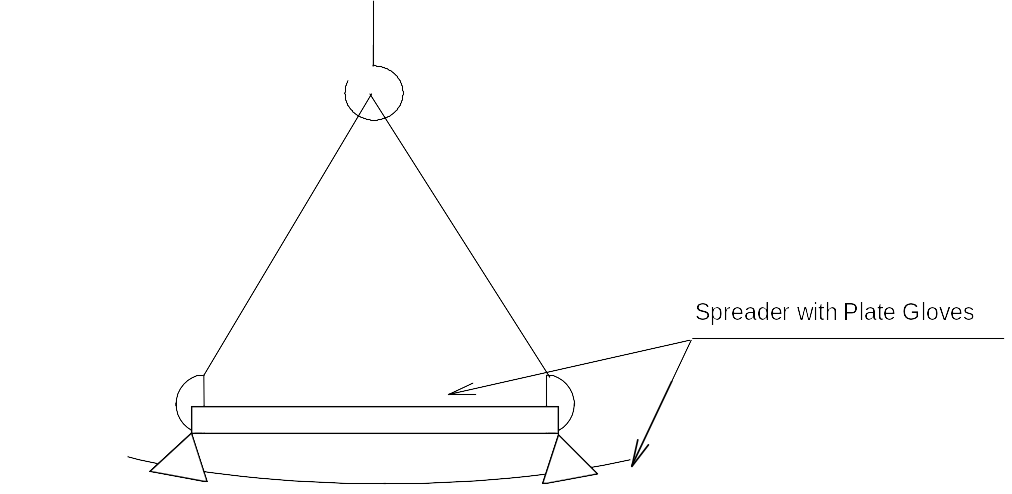 (2) Applicable type & size of spreader and numbers, length & size of wire-rope or hacker shall be suitable for lifting and handling of materials. Spreader shall be used for lifting and handling of large flat/curved rectangular plate as shown below.