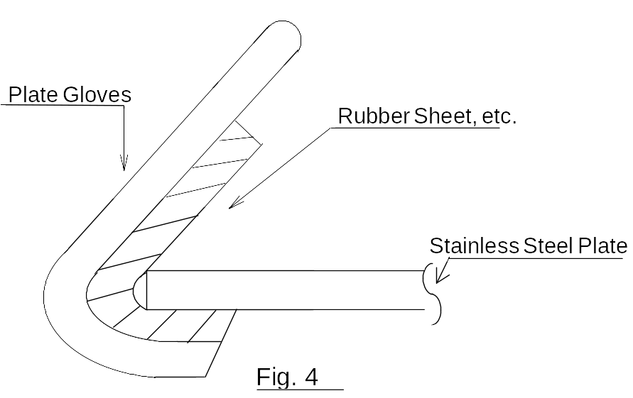 When stainless steel plate is lifted, rubber sheet or other suitable pad shall be provided between plate and plate gloves to prevent direct contact.