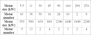 Therefore, the higher the number of motors of size in the range of 250–800 kW, the greater the saving.