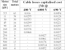 The study identified the size and number of motors as the key factors that could lead to replacing 400V with 690V and thus defined general criteria that can be used for any specific facility.