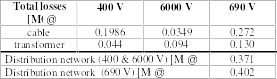 The capitalized network losses of the 690V system are in this case slightly higher than those of the 400V-6000V system due to the higher losses of the 690V cables compared to those at 6000V.