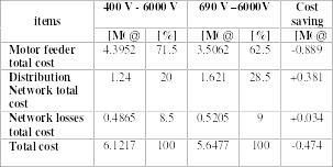 The key point of investment cost saving is the lower cost of the 690V motor (20% to 60% less) compared to the corresponding 6000V motor.