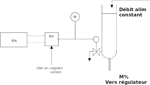 Dans ce montage, la consigne du régulateur est donnée par un autre régulateur appelé : PILOTE. On dit que le régulateur de débit est asservi au régulateur de niveau.